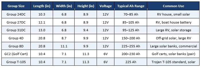 Deep Cycle Battery Group Size Chart: For RVs, Solar & Off-Grid Use