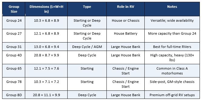RV Battery Group Size Chart: What You Need for Life on the Road